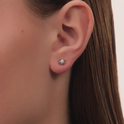 Академия Бриллиантов представляют золотые серьги, украшенные двумя бриллиантами. Огранка камней выполнена в форме круга с 57 гранями, весом 0.111 карат. Цвет камней - 3, чистота - 6, тип огранки - А. Изделие выполнено из желтого золота 585 пробы. Вес изделия составляет 1.36 г. Произведено в России.