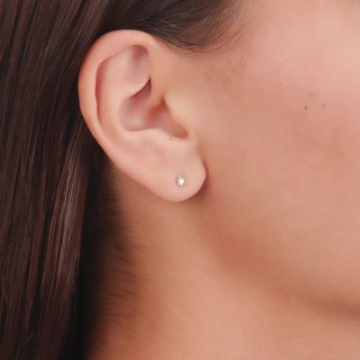 Серьги с 2 бриллиантами природными, 0.08 карат, огранка круг 57 граней, цвет 4, чистота 6, тип огранки А; Белое золото 585 пробы.
