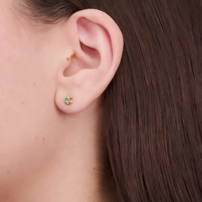 Серьги с 2 изумрудами природными, 0.13 карат, цвет 3, чистота 3, тип огранки В; Розовое золото 585 пробы.
