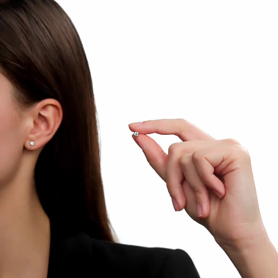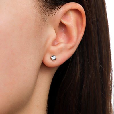 Серьги с 2 бриллиантами природными, 0.3 карат, огранка круг 57 граней, цвет 4, чистота 6, тип огранки А; Белое золото 585 пробы.