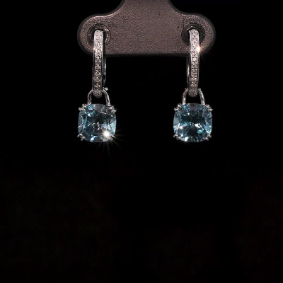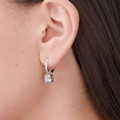 Серьги с 22 бриллиантами природными, 0.05 карат, огранка круг 17 граней, цвет 2, чистота 2, тип огранки Б; 2 топазами, 3.47 карат; Белое золото 585 пробы.