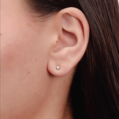 Серьги с 2 бриллиантами природными, 0.1 карат, огранка круг 57 граней, цвет 3, чистота 6, тип огранки А; Белое золото 585 пробы.