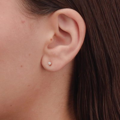 Серьги с 2 бриллиантами природными, 0.1 карат, огранка круг 57 граней, цвет 3, чистота 6, тип огранки А; Розовое золото 585 пробы.