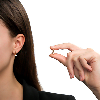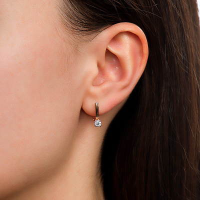 Серьги с 2 бриллиантами природными, 0.39 карат, огранка круг 57 граней, цвет 3, чистота 6, тип огранки А; Розовое золото 585 пробы.