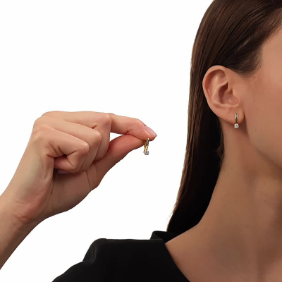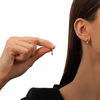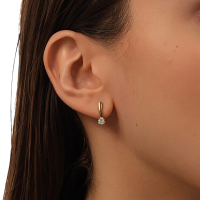 Серьги с 2 бриллиантами природными, 0.38 карат, огранка круг 57 граней, цвет 3, чистота 6, тип огранки А; Желтое золото 585 пробы.