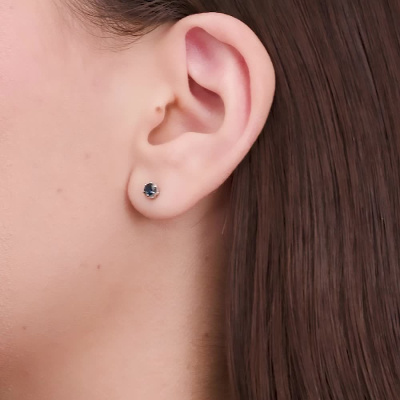 Серьги с 2 сапфирами природными, 0.37 карат, цвет 2, чистота 2, тип огранки В; Белое золото 585 пробы.