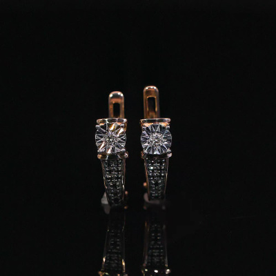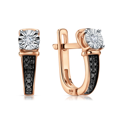 Серьги с 2 бриллиантами природными, 0.04 карат, огранка круг 57 граней, цвет 4, чистота 5, тип огранки А; 8 бриллиантами черными природными облагороженными, 0.03 карат, огранка круг 57 граней, цвет 7, чистота 6, тип огранки А; 12 бриллиантами черными природными облагороженными, 0.03 карат, огранка круг 57 граней, цвет 7, чистота 6, тип огранки А; Розовое золото 585 пробы.