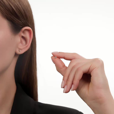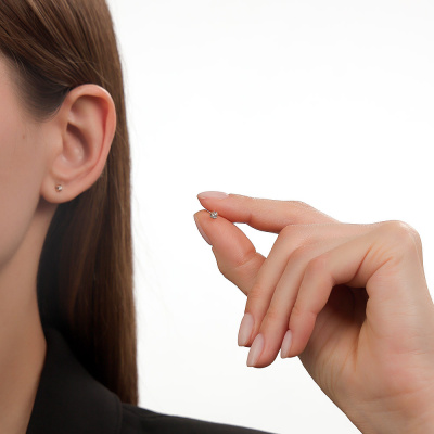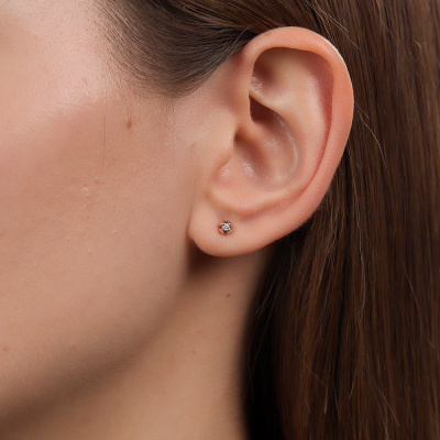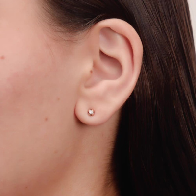 Серьги с 2 бриллиантами природными, 0.05 карат, огранка круг 57 граней, цвет 3, чистота 6, тип огранки А; Розовое золото 585 пробы.