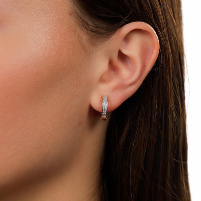 Серьги с 48 бриллиантами природными, 0.14 карат, огранка круг 17 граней, цвет 2, чистота 2, тип огранки А; Розовое золото 585 пробы.