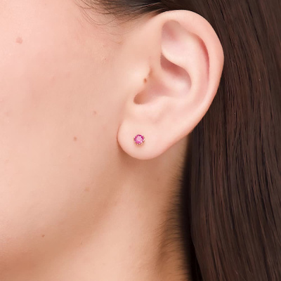 Серьги с 2 рубинами природными, 0.37 карат, цвет 2, чистота 2, тип огранки В; Розовое золото 585 пробы.