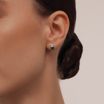Золотые серьги с бриллиантами природными и изумрудами выращенными