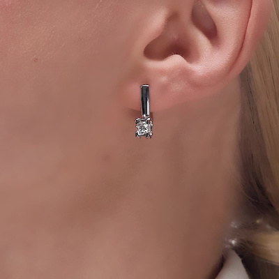 Серьги с 2 бриллиантами природными, 0.47 карат, огранка круг 57 граней, цвет 4, чистота 6, тип огранки А; Белое золото 585 пробы.