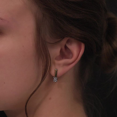 Серьги с 2 бриллиантами природными, 0.47 карат, огранка круг 57 граней, цвет 4, чистота 6, тип огранки А; Желтое золото 585 пробы.