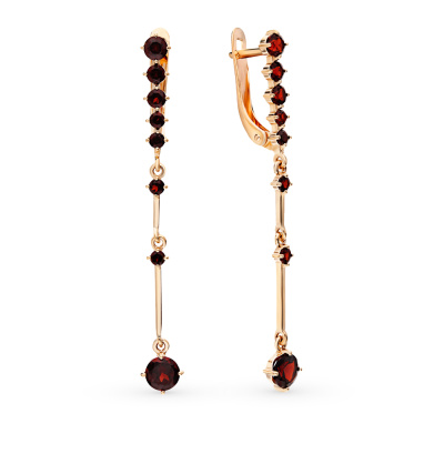 Золотые серьги с гранатами природными
