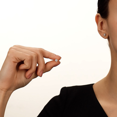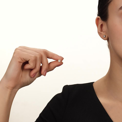 Серьги с 2 бриллиантами природными, 0.08 карат, огранка круг 57 граней, цвет 3, чистота 5, тип огранки А; 12 бриллиантами природными, 0.13 карат, огранка круг 57 граней, цвет 3, чистота 5, тип огранки А; 12 бриллиантами природными, 0.03 карат, огранка круг 57 граней, цвет 3, чистота 5, тип огранки А; Белое золото 585 пробы.