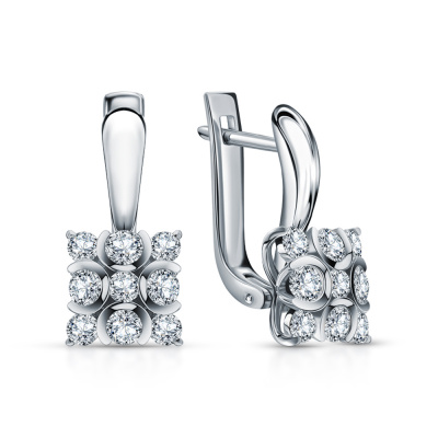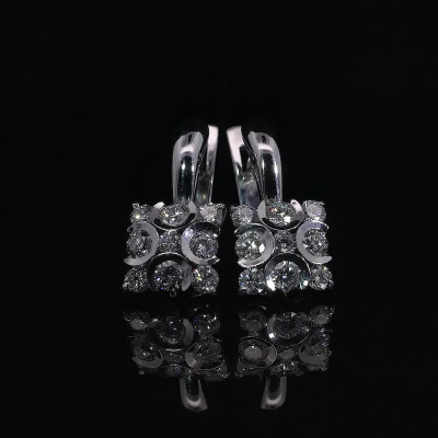 Серьги с 8 бриллиантами природными, 0.62 карат, огранка круг 57 граней, цвет 3, чистота 6, тип огранки А; 8 бриллиантами природными, 0.42 карат, огранка круг 57 граней, цвет 3, чистота 6, тип огранки А; 2 бриллиантами природными, 0.08 карат, огранка круг 57 граней, цвет 3, чистота 6, тип огранки А; Белое золото 585 пробы.