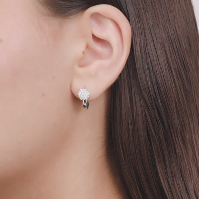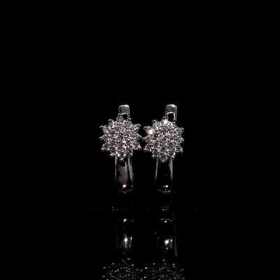 Серьги с 38 бриллиантами природными, 0.36 карат, огранка круг 57 граней, цвет 4, чистота 6, тип огранки А; Белое золото 585 пробы.