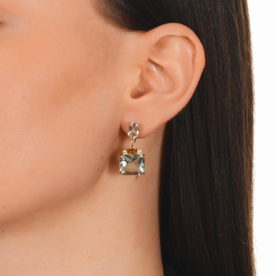 Золотые серьги с султанитами, аметистами природными и хризолитами природными