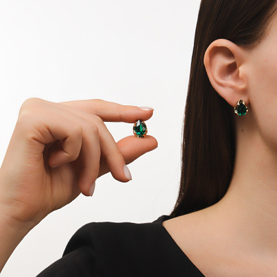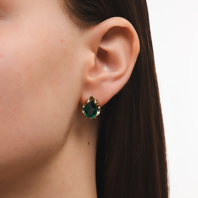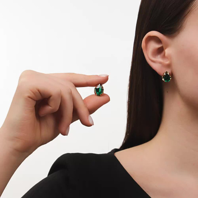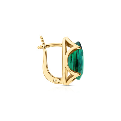 Серьги с 2 гидротермальными изумрудами, 4.63 карат; Желтое золото 585 пробы.
