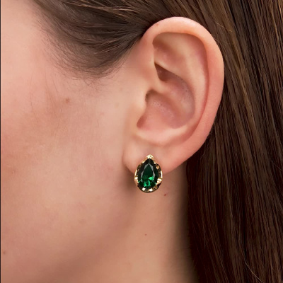 Серьги с 2 гидротермальными изумрудами, 4.61 карат; Желтое золото 585 пробы.