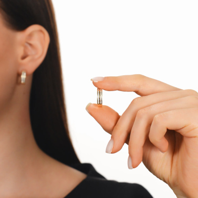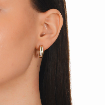 Серьги с 44 бриллиантами природными, 0.49 карат, огранка круг 57 граней, цвет 4, чистота 6, тип огранки А; Желтое золото 585 пробы.
