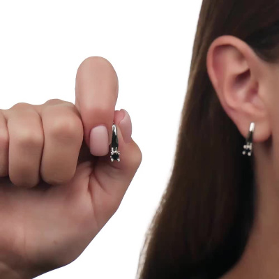 Серьги с 8 бриллиантами природными, 0.02 карат, огранка круг 17 граней, цвет 2, чистота 2, тип огранки Б; 2 сапфирами природными, 0.32 карат, цвет 2, чистота 2, тип огранки В; Белое золото 585 пробы.