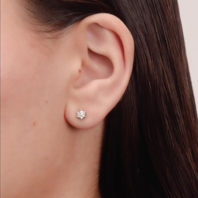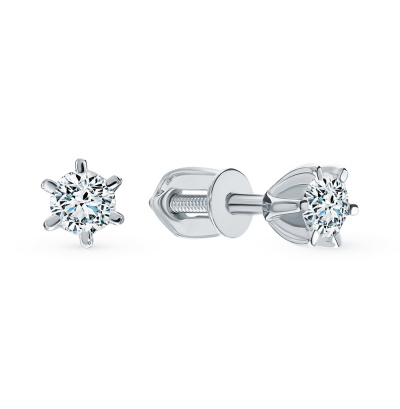Серьги с 2 бриллиантами природными, 0.52 карат, огранка круг 57 граней, цвет 4, чистота 5, тип огранки А; Белое золото 585 пробы.
