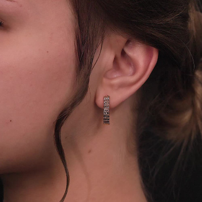 Серьги с 54 бриллиантами природными, 0.22 карат, огранка круг 17 граней, цвет 2, чистота 2, тип огранки А; Розовое золото 585 пробы.