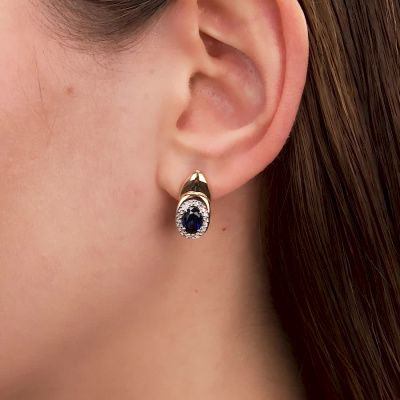 Золотые серьги с бриллиантами природными и сапфирами выращенными