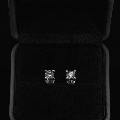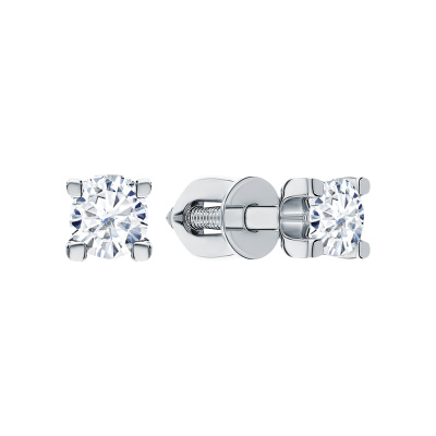 Серьги с 2 бриллиантами природными, 0.5 карат, огранка круг 57 граней, цвет 4, чистота 5, тип огранки А; Белое золото 585 пробы.