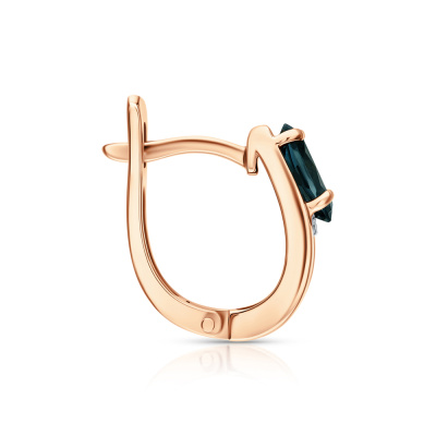 Серьги с 10 бриллиантами природными, 0.02 карат, огранка круг 17 граней, цвет 2, чистота 2, тип огранки А; 2 топазами лондон природными, 1.78 карат; 8 сапфирами природными, 0.28 карат, цвет 2, чистота 2, тип огранки В; 4 сапфирами природными, 0.1 карат, цвет 2, чистота 2, тип огранки В; Розовое золото 585 пробы.