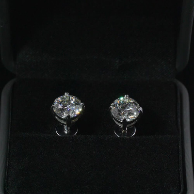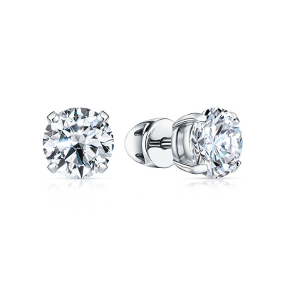 Серьги с 1 бриллиантом природным, 1.5 карат, огранка круг 57 граней, цвет 5, чистота 5, тип огранки А; 1 бриллиантом природным, 1.5 карат, огранка круг 57 граней, цвет 5, чистота 7, тип огранки А; Белое золото 750 пробы.