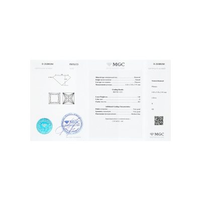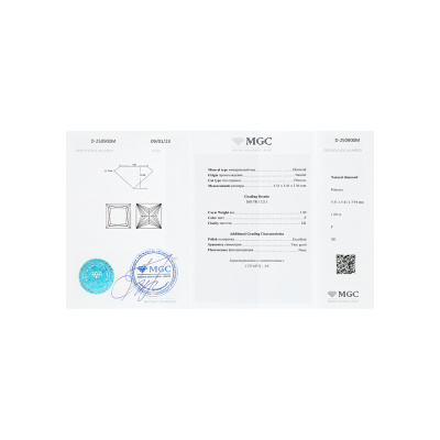 Серьги с 2 бриллиантами природными, 2.01 карат, огранка принцесса 65 граней, цвет 4, чистота 6, тип огранки А; Белое золото 750 пробы.