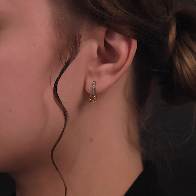 Золотые серьги с бриллиантами природными и цитринами природными