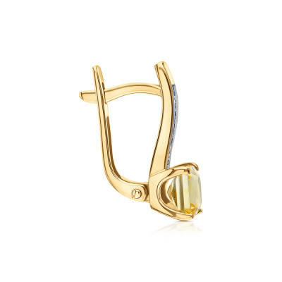 Серьги с 14 бриллиантами природными, 0.03 карат, огранка круг 17 граней, цвет 2, чистота 2, тип огранки А; 2 цитринами природными, 1.18 карат, тип огранки Б; Желтое золото 585 пробы.