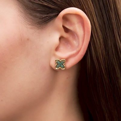 Серьги с 42 изумрудами природными, 0.15 карат, цвет 3, чистота 3, тип огранки В; Желтое и белое золото 585 пробы.
