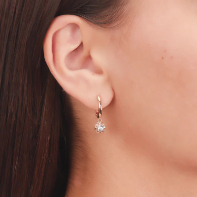 Серьги с 2 бриллиантами природными, 0.005 карат, огранка круг 57 граней, цвет 4, чистота 5, тип огранки А; Розовое и белое золото 585 пробы.