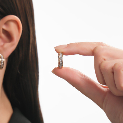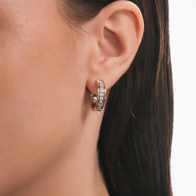 Серьги с 18 бриллиантами природными, 0.33 карат, огранка круг 57 граней, цвет 3, чистота 6, тип огранки А; 20 бриллиантами природными, 0.04 карат, огранка круг 17 граней, цвет 2, чистота 2, тип огранки А; Желтое и белое золото 585 пробы.
