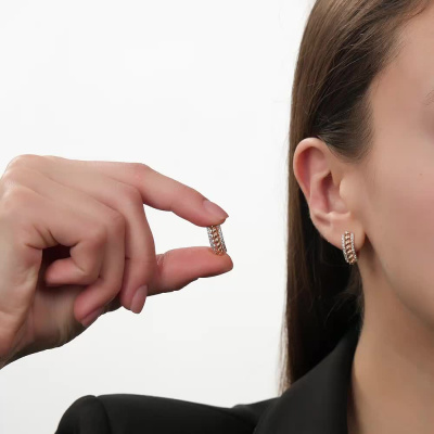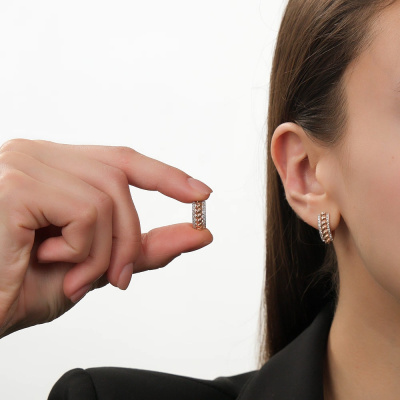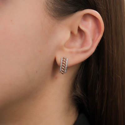 Серьги с 40 бриллиантами природными, 0.29 карат, огранка круг 17 граней, цвет 2, чистота 2, тип огранки Б; Розовое золото 585 пробы.