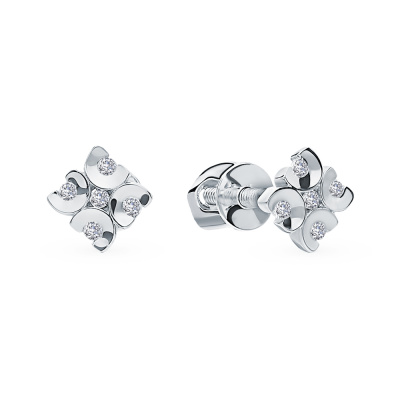 Серьги с 10 бриллиантами природными, 0.08 карат, огранка круг 57 граней, цвет 3, чистота 6, тип огранки А; Белое золото 585 пробы.
