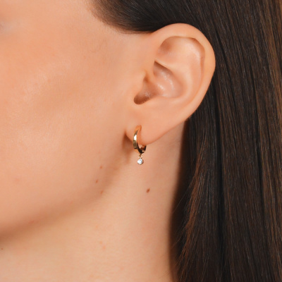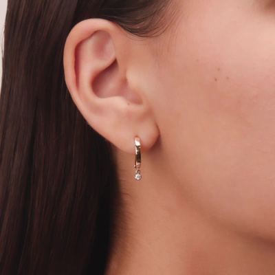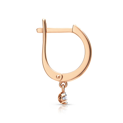 Серьги с 2 бриллиантами природными, 0.09 карат, огранка круг 57 граней, цвет 3, чистота 6, тип огранки А; Розовое золото 585 пробы.