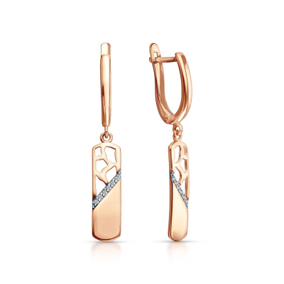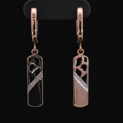 Серьги с 12 бриллиантами природными, 0.05 карат, огранка круг 17 граней, цвет 2, чистота 2; Розовое золото 585 пробы.