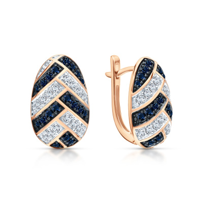 Серьги с 30 бриллиантами природными, 0.44 карат, огранка круг 57 граней, цвет 3, чистота 6, тип огранки А; 6 бриллиантами природными, 0.04 карат, огранка круг 57 граней, цвет 3, чистота 6, тип огранки А; 36 сапфирами природными, 0.7 карат, цвет 2, чистота 2, тип огранки В; 2 сапфирами природными, 0.02 карат, цвет 2, чистота 2, тип огранки В; Розовое золото 585 пробы.