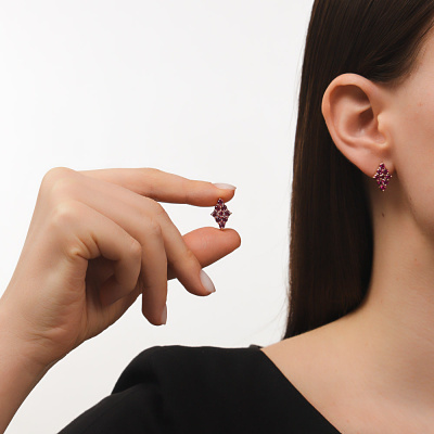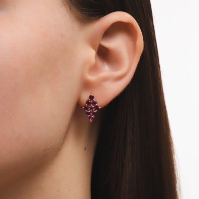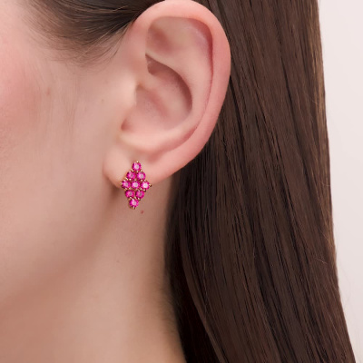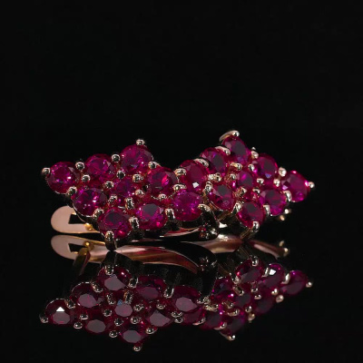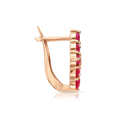 Серьги с 18 рубинами синтетическими, 2.33 карат; Розовое золото 585 пробы.
