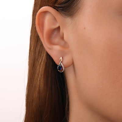Серьги с 10 бриллиантами природными, 0.04 карат, огранка круг 17 граней, цвет 2, чистота 2; 2 сапфирами синтетическими, 0.89 карат; Розовое золото 585 пробы.