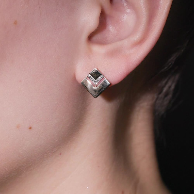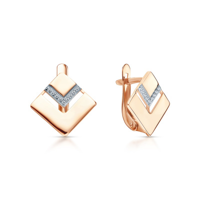 Серьги с 18 бриллиантами природными, 0.04 карат, огранка круг 17 граней, цвет 2, чистота 2, тип огранки А; Розовое золото 585 пробы.