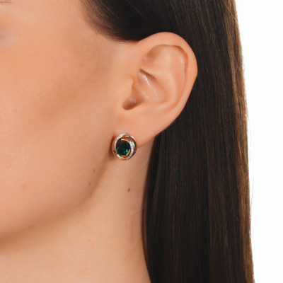 Золотые серьги с бриллиантами природными и изумрудами выращенными