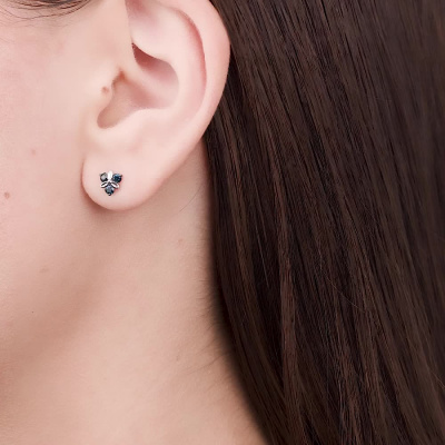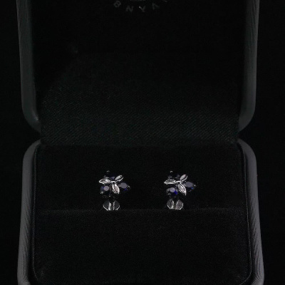 Серьги с 6 сапфирами природными, 0.44 карат, цвет 2, чистота 2, тип огранки В; Белое золото 585 пробы.