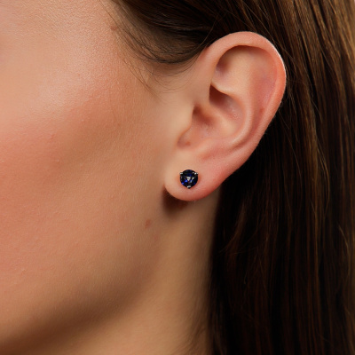 Серьги с 2 бриллиантами природными, 0.008 карат, огранка круг 17 граней, цвет 2, чистота 2, тип огранки А; 6 сапфирами синтетическими, 0.96 карат; Розовое золото 585 пробы.