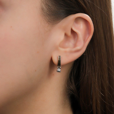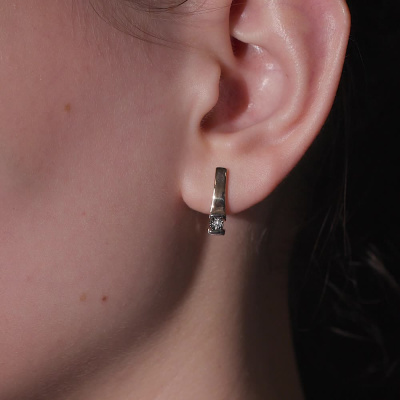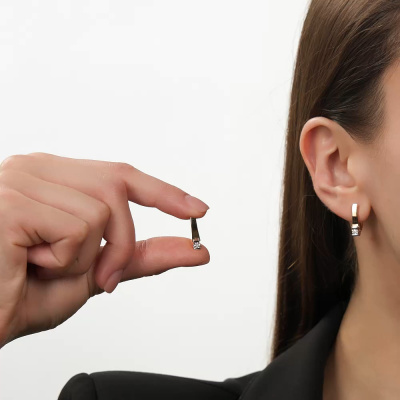 Серьги с 2 бриллиантами природными, 0.03 карат, огранка круг 57 граней, цвет 3, чистота 5, тип огранки А; Розовое и белое золото 585 пробы.